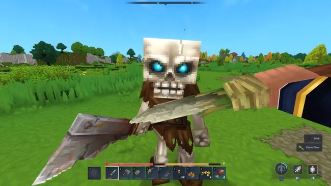 Pokud jste někdy hráli Minecraft, budete se v Hytale cítit jako doma. Hra nabízí klasické mechaniky jako těžení bloků, rozbíjení kamenů, výrobu vybavení, stavění základny a boj s fantasy příšerami jako jsou kostlivci a pavouci. K dispozici je procedurálně generovaný blokový svět k prozkoumání včetně hlubokých temných jeskyní.