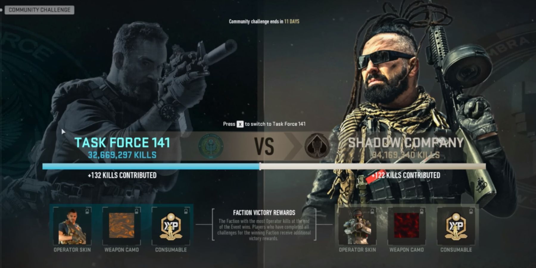S příchodem páté sezóny hry Warzone 2 a Modern Warfare 2 byla zavedena nová událost, která změnila pravidla veřejných výzev: Factions Event (Událost frakcí). Během této události měli hráči možnost se přidat k jedné ze dvou frakcí inspirovaných hrami CoD (Shadow Company a Task Force 141), soutěžit proti sobě navzájem a vyhrát zajímavé ceny.